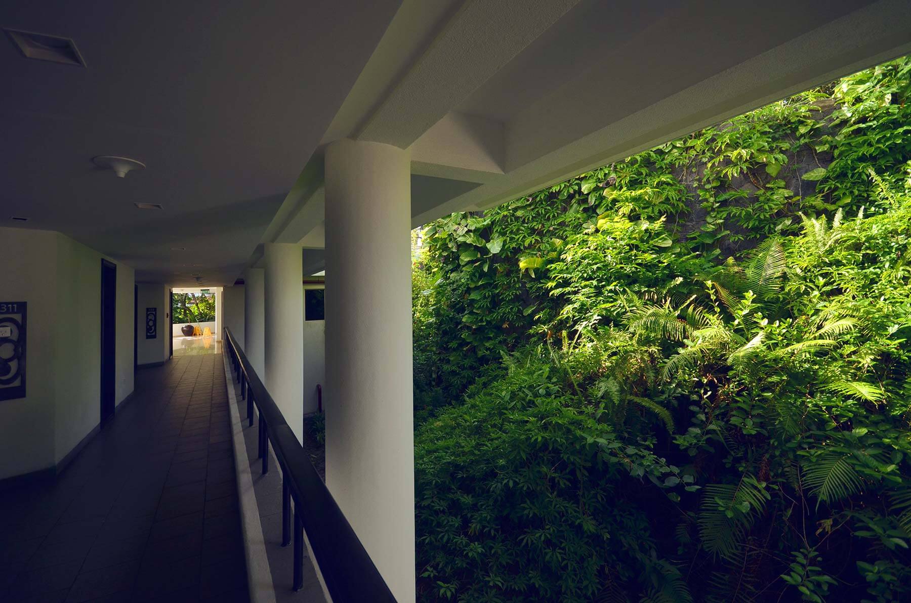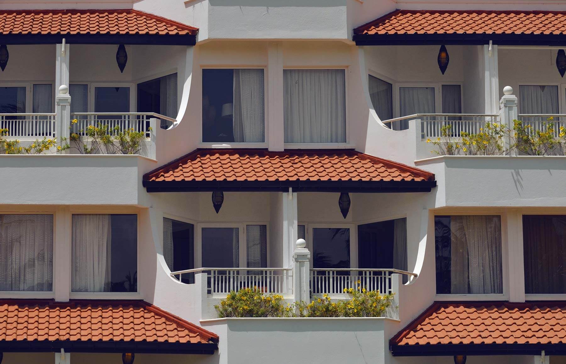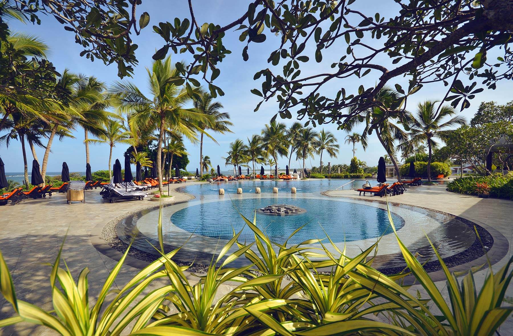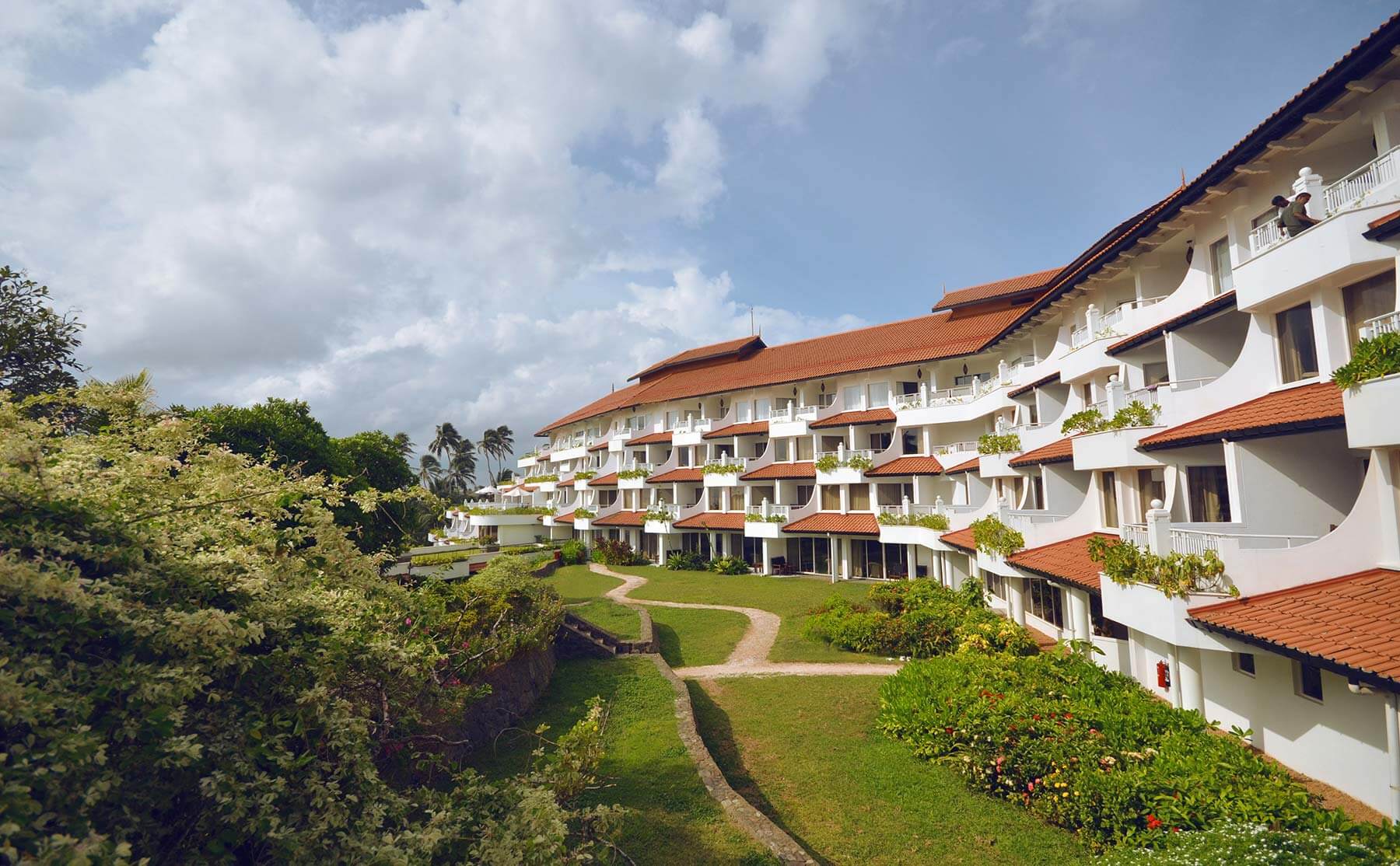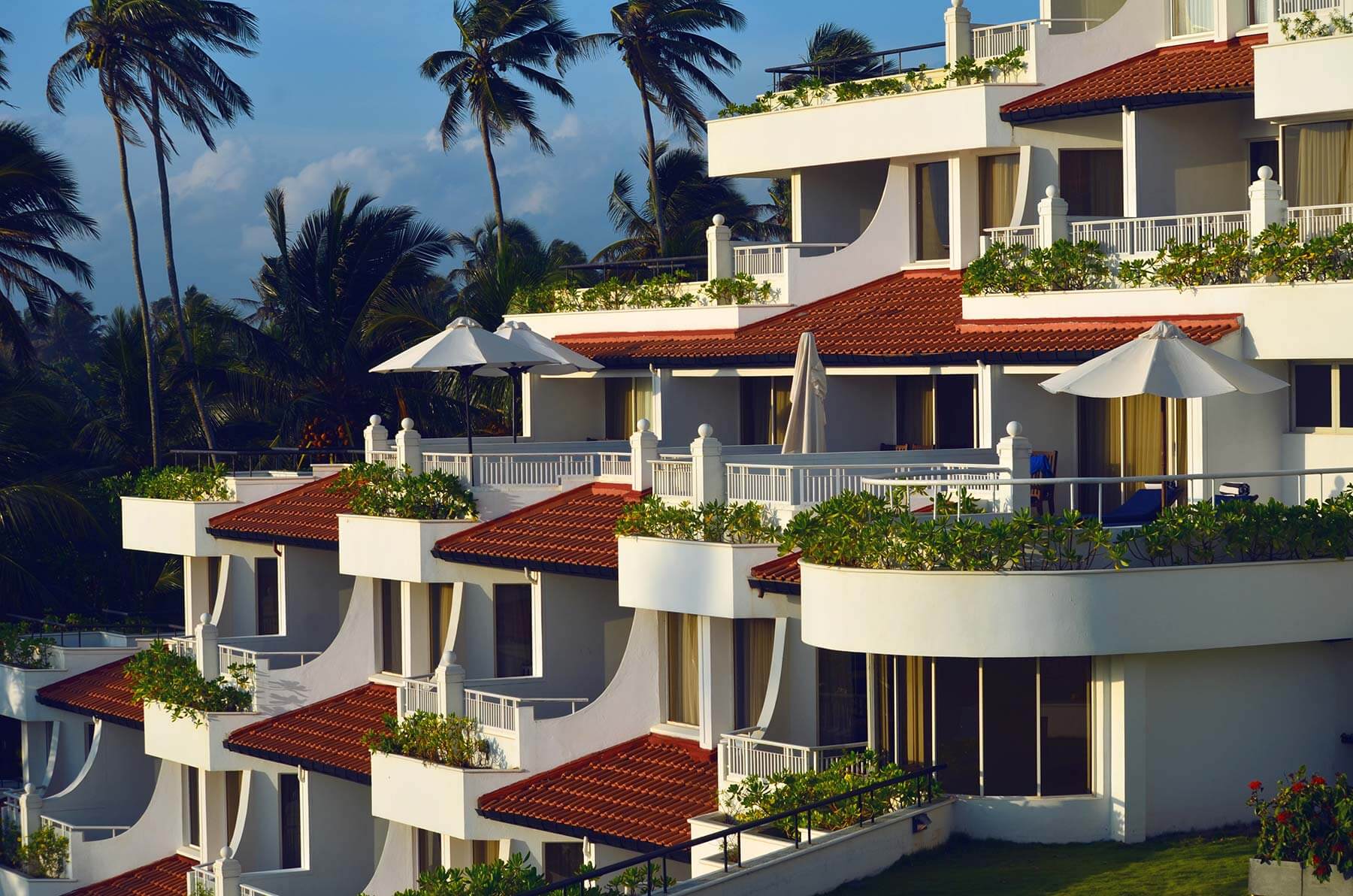 Set on the southern coast of Sri Lanka, Taj Exotica nestle itself among the old charm of lush greenery and exceptional ensemble of rocky cliff formation and terrain facing the beach. The site was an old quarry back in the British period which created a cliff facing the sea. The design took advantage of using the height differences from the entrance level. The main entrance to the hotel is from the 3rd level and the building is designed with floors below with a cascading effect facing the sea with a panoramic view towards the Indian Ocean.