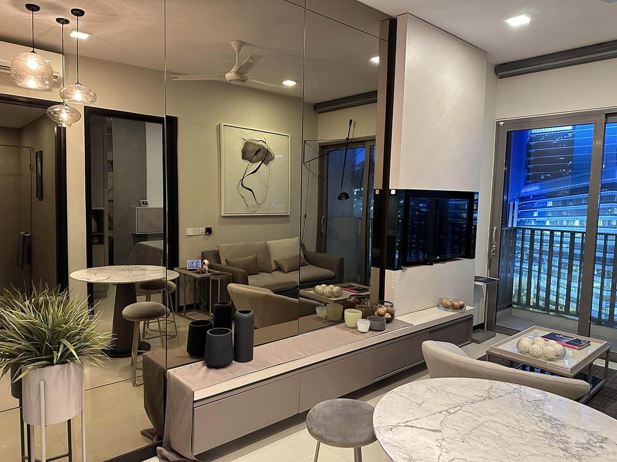 The development offers 897 smart-living residential units, ranging from one to three bedrooms, emphasizing community-focused, intelligent living, a maximum height of 196 meters, and parking for 669 vehicles.